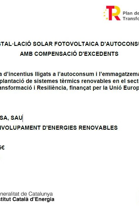 Project under the incentive programme linked to self-consumption and storage,…