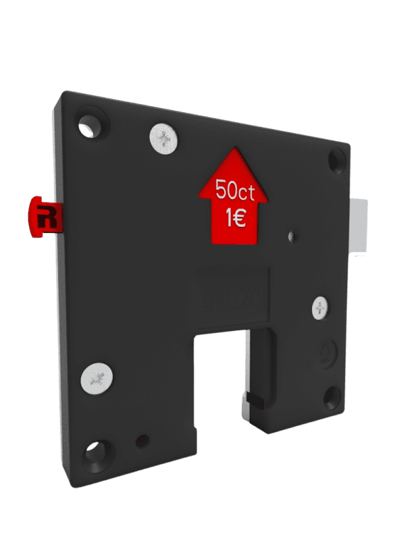 Caixetí dipòsit de monedes amb clau tubular de seguretat. Els moneders poden ser fàcilment convertits a sistema de pagament afegint el caixetí opcional de dipòsit.